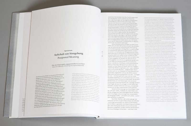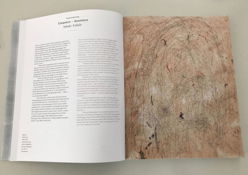 Diese umfangreiche Publikation zeigt einen Überblick über das Werk von Susanne Schossig von 1990 bis heute. Die Künstlerin hat im Laufe dieser 30 Jahre zahlreiche Ausstellungen in Deutschland und dem Ausland realisiert, zu denen Texte in begleitenden Katalogen erschienen und Reden zu den Eröffnungen gehalten wurden. Solche Texte und Reden zu verschiedenen Etappen ihrer Entwicklung und verschiedenen Medien – zarte Malerei, dichte Materialbilder, ortsbezogene Installationen, Klanginstallationen – werden hier zusammen mit neuen Texten publiziert und geben ein umfassendes Bild des präzisen, konzentrierten, nachdenklichen aber auch heiteren und, wie das Atmen, flüchtigen und leichten Schaffens von Susanne Schossig.
